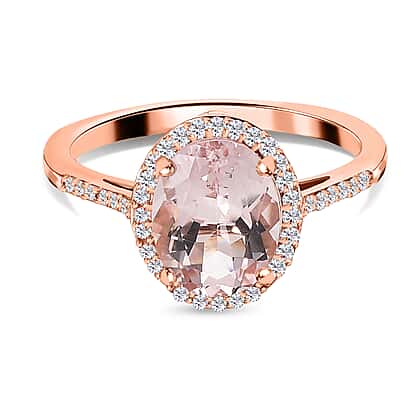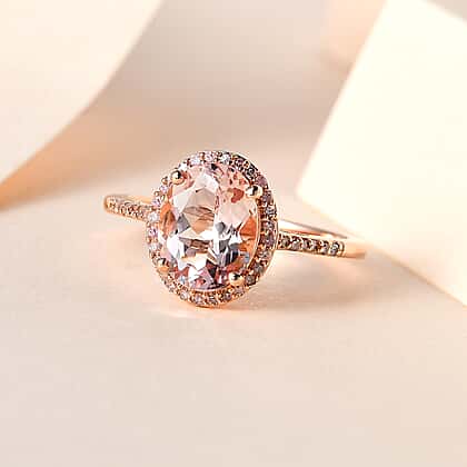 - Halo ring studded with a faceted cut Pink Morganite Oval (9x7mm)
