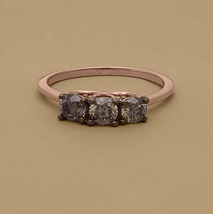 14K Rose Gold SGL Certified Natural Champagne Diamond (I1-I2) 3 Stone Ring 1.00 Ct
