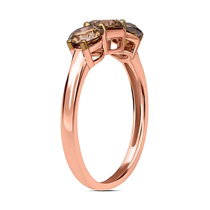 14K Rose Gold SGL Certified Natural Champagne Diamond (I1-I2) 3 Stone Ring 2.00 Ct.