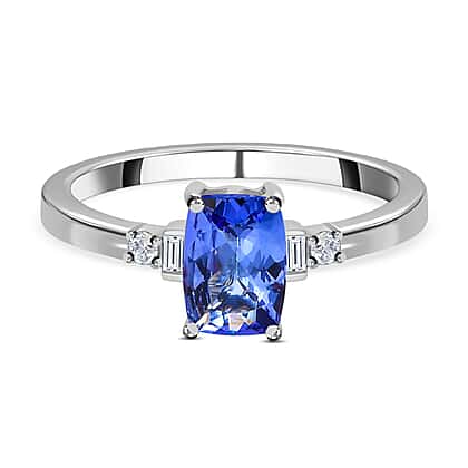 14K White Gold AAA Tanzanite and Diamond Ring 0.95 Ct.