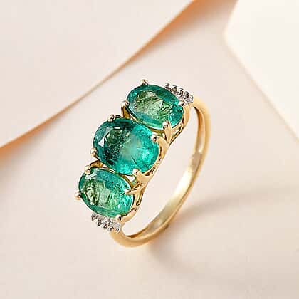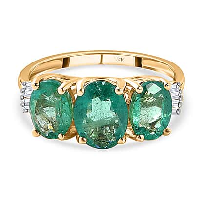 14K Yellow Gold AAA Gemfields Emerald and Diamond Ring 2.70 Ct