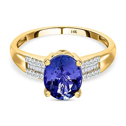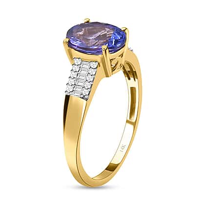 14K Yellow Gold AAA Tanzanite and Diamond (G-H) Ring 2.12 Ct.