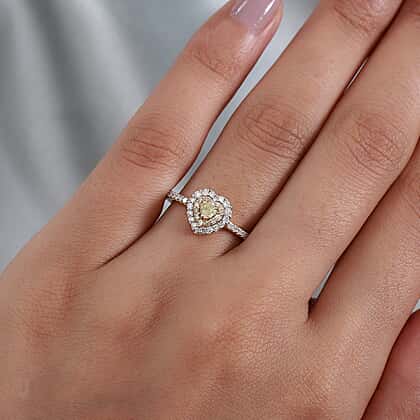 14K Yellow Gold Natural Yellow Diamond and White Diamond Heart Ring 0.50 Ct.