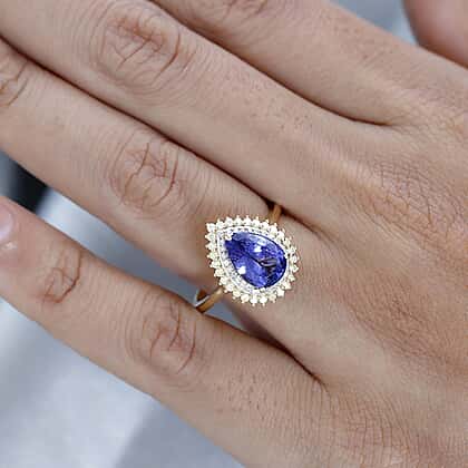 14K Yellow Gold Premium Tanzanite, Natural Yellow Diamond & White Diamond Tear Drop Ring 2.40 Ct.