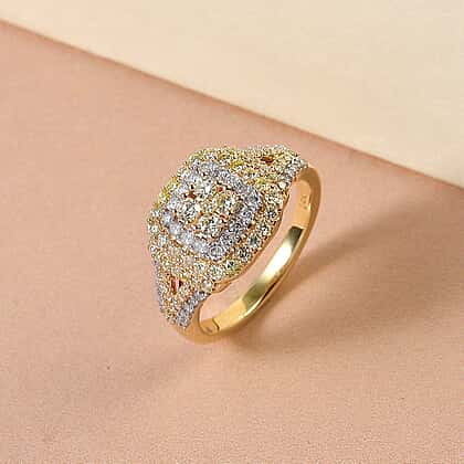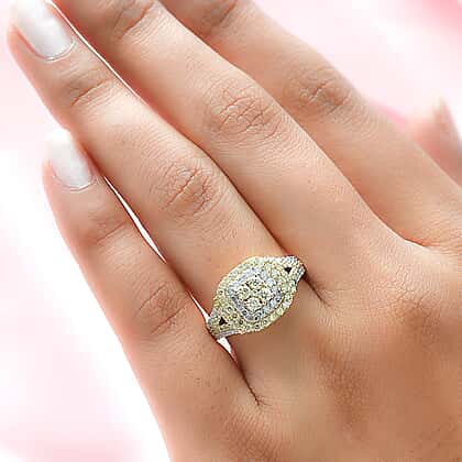 14K Yellow Gold SGL Certified Natural Yellow Diamond (I1-I2) and White Diamond (I3-G-H) Cluster Ring 1.00 Ct.