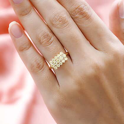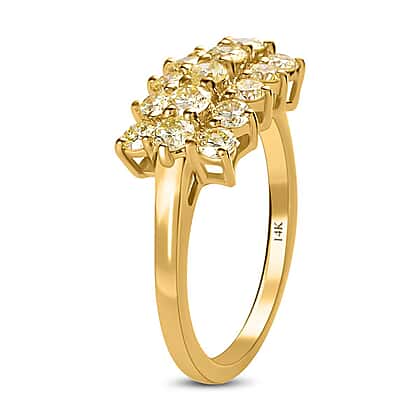 Inspired by the cluster theme, you are sure to win hearts with the sparkling brilliance of this SGL Certified natural yellow diamond cluster ring. This enchanting ring features three rows of round-shaped yellow diamonds in prong settings, radiating colourful brilliance. A total of 15 SGL-certified yellow diamonds are encrusted in this jewel. Set in a luxurious frame of 14K yellow gold, the amazing shine and unwavering charm of this ring will make you sparkle for the right reasons.