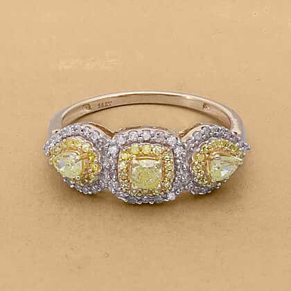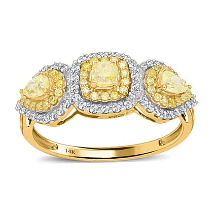 14K Yellow Gold SGL Certified Natural Yellow Diamond and White Diamond SI I1 GH) Trilogy Ring 1.01 Ct