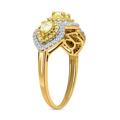 14K Yellow Gold SGL Certified Natural Yellow Diamond (SI-I1-G-H) and White Diamond (SI-I1-G-H) Ring 1.05 Ct.