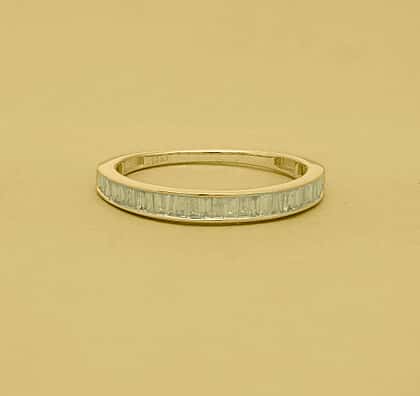 Inspired by half eternity band theme, this SGL Certified natural yellow diamond ring is full of colour and brilliance. A half-eternity band symbolises continuous and ongoing love. This elegant ring features baguette-shaped diamonds, secured in a channel setting and radiating colourful hues. This beautiful jewel comes with a finished under gallery to ensure easy slide on the finger. Set in a luxurious frame of 14K yellow gold, the fiery shimmer and captivating charm of this gemstone ring will make you go for it again and again.