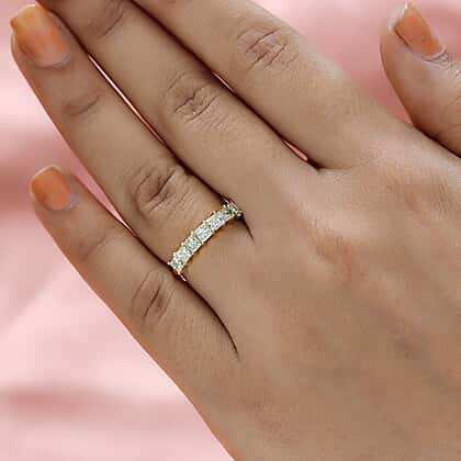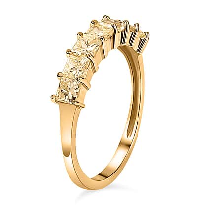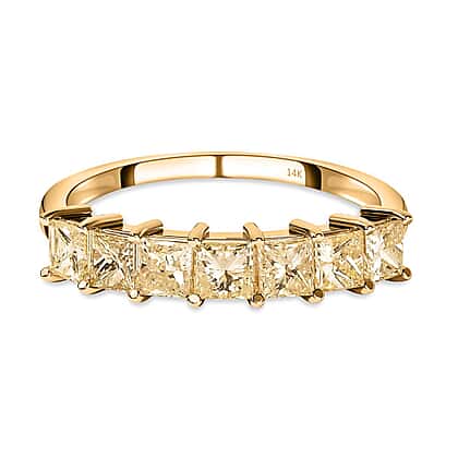 Shine bright with our stunning SGL Certified natural yellow diamond band ring! Crafted with 14K yellow gold, this ring features seven square-shaped yellow diamonds that radiate a beautiful golden glow. With a total weight of 1.00 carat, this ring will make a statement wherever you go. Each diamond is carefully selected for its brilliance and set in a secure prong setting. Whether worn as a standalone piece or stacked with other rings, this beauty will become a treasured addition to your jewellery collection. Don't miss out on owning this unique and rare piece of nature's beauty.