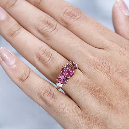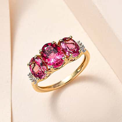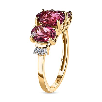 14K Yellow Gold Vivid Namibian Pink Tourmaline & Diamond Ring 2.89 Ct