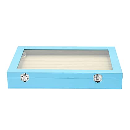 150 Slot Ring Box with Acrylic Window and Anti Tarnish Lining Trinket Jewellery Organiser (Size 35x24x5 Cm) - Sky Blue