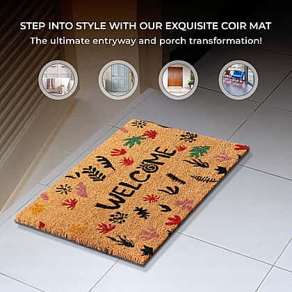 Delight in nature's elegance with the Coir Flower and Leaves Rug and doormat. Crafted meticulously from durable coir fibres, it portrays a delicate dance of florals and foliage underfoot. Its robust design is not only a visual treat but ensures your indoors stay pristine by capturing dirt. Perfect for homes that cherish artistry and utility, this mat is the charming threshold every doorway deserves.