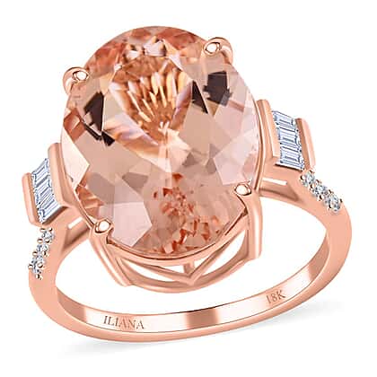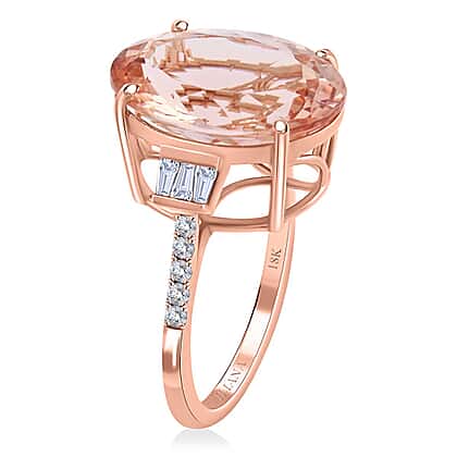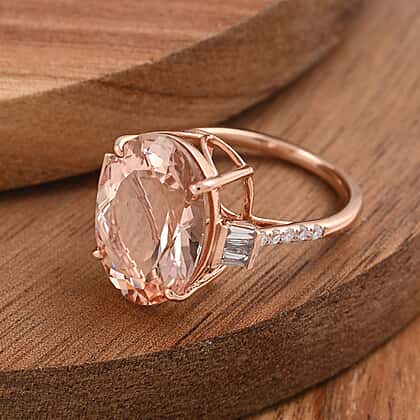 18K Rose Gold AAA Marropino Morganite , White Diamond SI Ring in Gold Wt. 3.78 grams, 10.10 Ct
