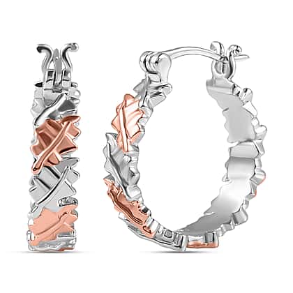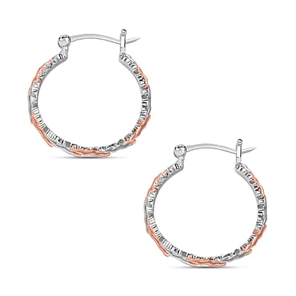 18K Vermeil Rose Gold and Platinum Plated Sterling Silver Hoop Earrings, Silver Wt. 6.73 Gms
