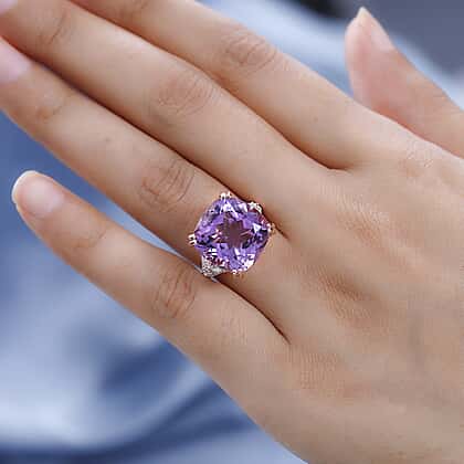 Pink Amethyst Solitaire Ring in 18K Rose Gold Vermeil Plated Sterling Silver