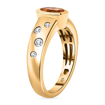18K Vermeil Yellow Gold Plated Side stone Moissanite Fire Opal Ring Ct.0.71