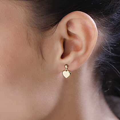 18K Vermeil Yellow Gold Plated Sterling Silver Stud Heart Earrings with Push Back