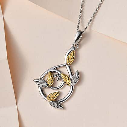 18K Vermeil Yellow Gold & Platinum Plated Sterling Silver Pendant with Chain (Size 20), Silver Wt. 6.4 Gms