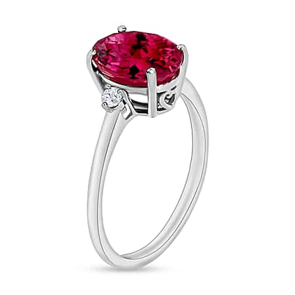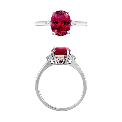 18K White Gold AAA Rubellite and White Diamond SI Classic Solitaire Ring in Gold Wt. 5.5 grams, 2.50 Ct