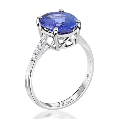 18K W Gold AAA Tanzanite , White Diamond SI Solitaire Ring 3.50 pc, Gold Wt. 2.71 Gms 3.500 Ct.