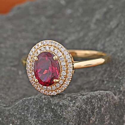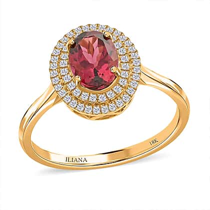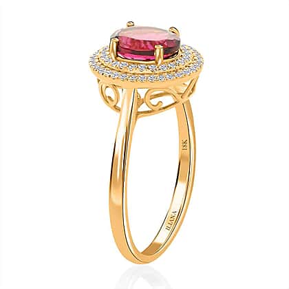 18K Yellow Gold AAA Rubellite, White Diamond SI Double Halo Ring 1.70 ct, Gold Wt. 3.61 Gms 1.700 Ct.