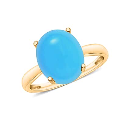18K Yellow Gold AAA Sleeping Beauty Turquoise Solitaire Ring in Gold Wt. 5.5 grams, 4.50 Ct