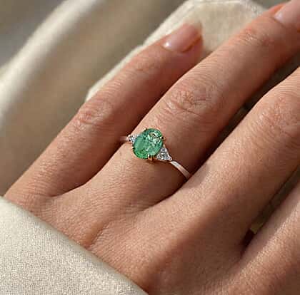 18K Yellow Gold AAAA Zambian Emerald, White Diamond Ring 1.40 Ct. (SI)