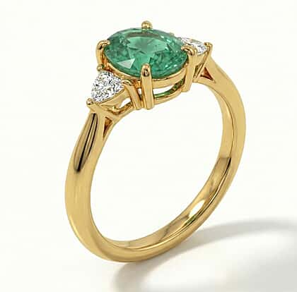 A rich burst of green defines this AAAA Zambian emerald ring, ideal for women who appreciate meaningful luxury. Laced with trillion-cut white diamonds, this ring features an oval-cut AAAA-grade Zambian emerald, prized for intense colour, natural rarity and robust structure, giving the design authentic depth. White diamonds add crisp brilliance and fire while enhancing the emerald’s glow. The 18K yellow gold band is hypoallergenic, tarnish‑resistant and won’t turn green, offering lasting comfort. Choose this ring when you want high‑grade gemstones, confident colour and a refined silhouette that feels truly special.