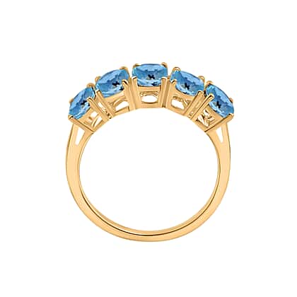 18K Yellow Gold Santamaria Aquamarine 5 Stone Ring in Gold Wt. 5.5 grams, 4.150 Ct