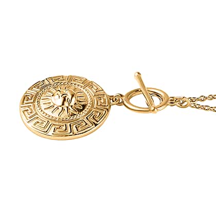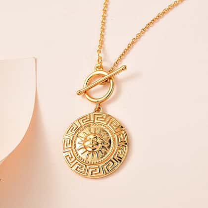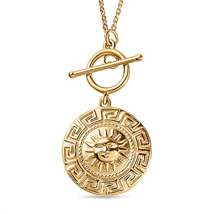 18K Yellow Gold Vermeil Plated Sterling Silver Greek Key Sun Necklace (Size-20) With T-Bar Clasp, Silver Wt 10.24 GM