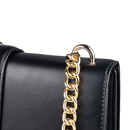 19V69 ITALIA by Alessandro Versace Crossbody Bag with Magnetic Clasp Closure and Chain Strap (Size 25x16x7cm) - Black