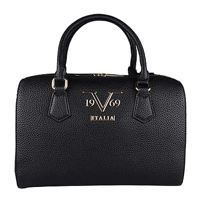 19V69 ITALIA by Alessandro Versace Litchi Pattern Women's Bowling Bag - Black