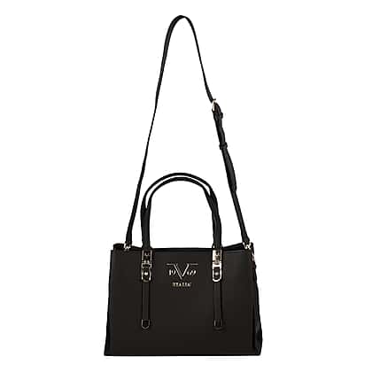 19V69 ITALIA by Alessandro Versace Litchi Pattern Handbag with Detachable Shoulder Strap and Zipper Closure - Black