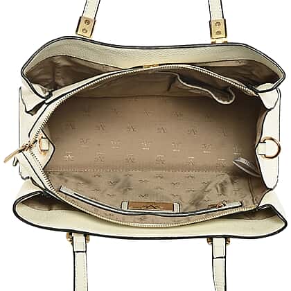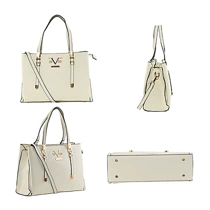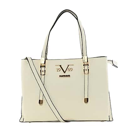 19V69 ITALIA by Alessandro Versace Litchi Pattern Handbag with Detachable Shoulder Strap and Zipper Closure (Size 33x11x22 Cm) - White