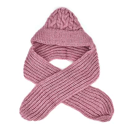 2 in 1 Knitted Hooded Scarf - Pink