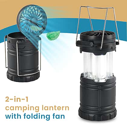 2-in-1 Portable Lantern with Folding Fan (3 AA battery, Not included)- Black