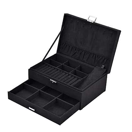 Our luxurious Velvet 2-Layer Jewellery Box with Lock. Crafted to perfection, it combines opulent velvet with a secure lock, creating a haven for your treasures. The two layers offer ample space for your beloved jewellery pieces, each compartment a canvas of organisation. With a touch of elegance and an assurance of security, this box transforms storage into an art form. Indulge in sophistication and entrust your gems to a masterpiece.