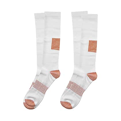 2 Pairs Antibacterial Copper Infused Compression Long Socks (Size L-XL, 9 to13) - White