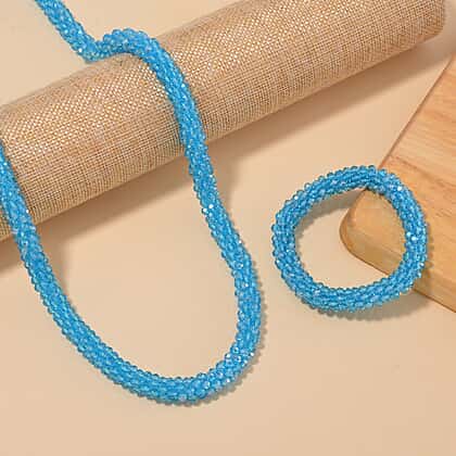 2 Piece Set - Blue Crystal Necklace and Bracelet