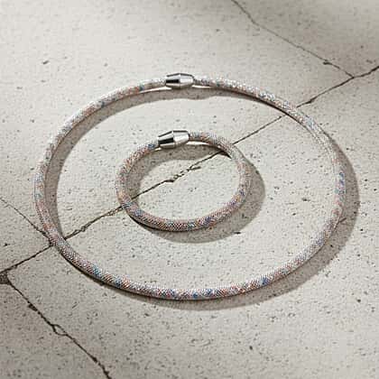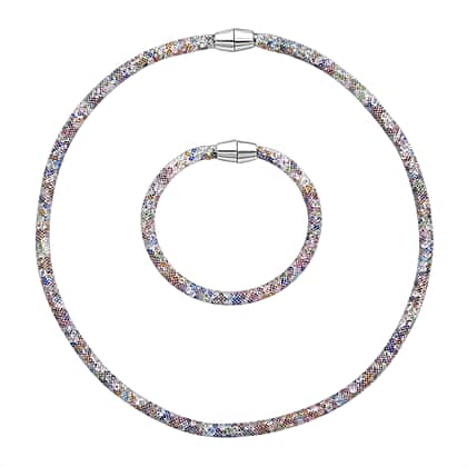2 Piece Set - Multi Color Crystal Fancy Necklace and Fancy Bracelet Pure White Brass 0.020 Ct.