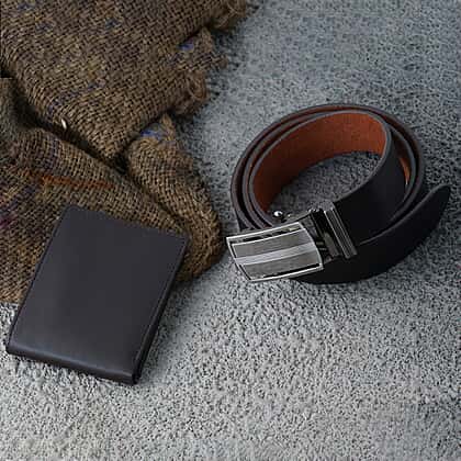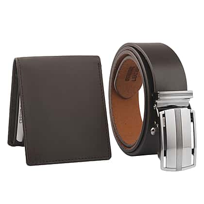 2 Piece Set - 100% Genuine Leather Belt and RFID Protected Wallet - Brown