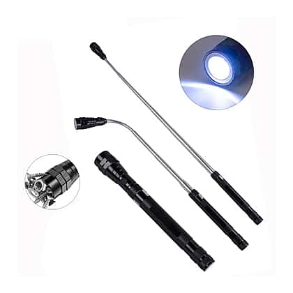 2 Piece Set - 360 Degree Flexible Head 3 LED Magnetic Flashlight (Size 17x2.2 Cm) (4XLR44 Battery Included) - Black