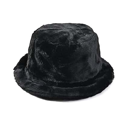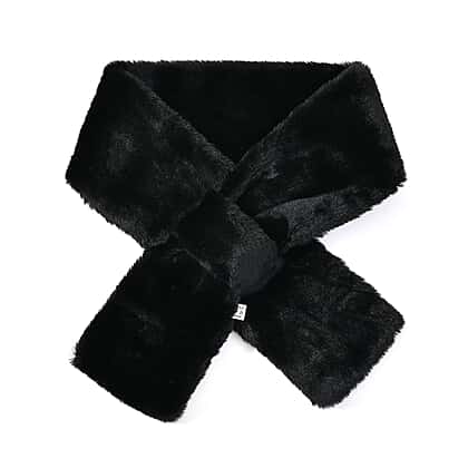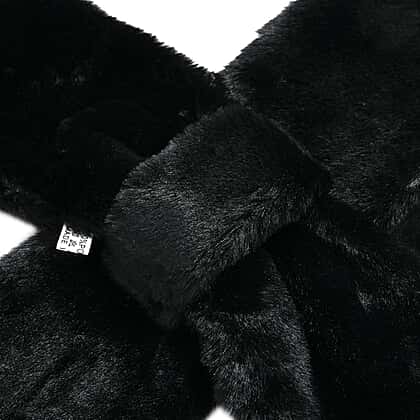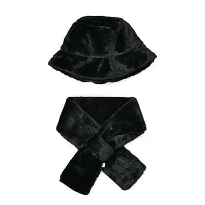 2 Piece Set - Faux Fur Hat and Scarf - Black