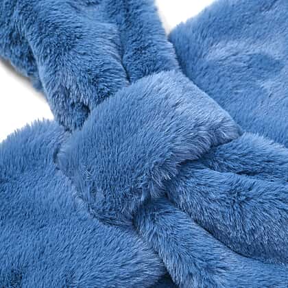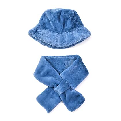 2 Piece Set - Faux Fur Hat and Scarf - Blue