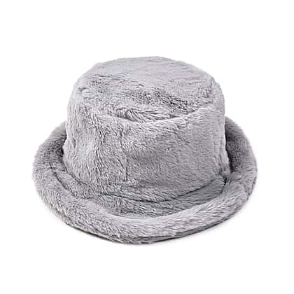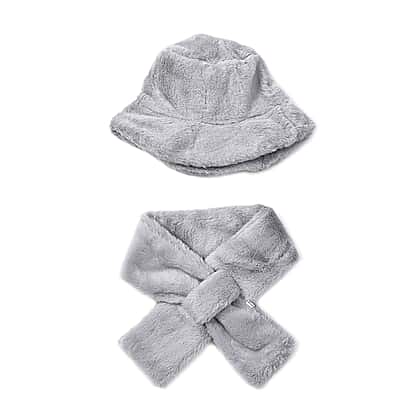 2 Piece Set - Faux Fur Hat and Scarf - Light Grey
