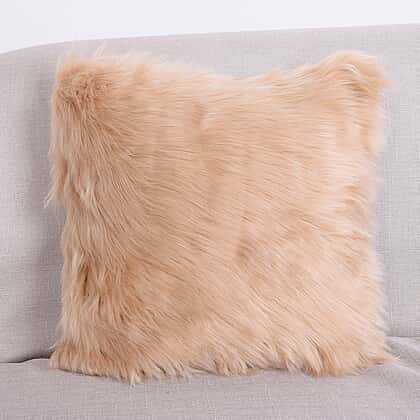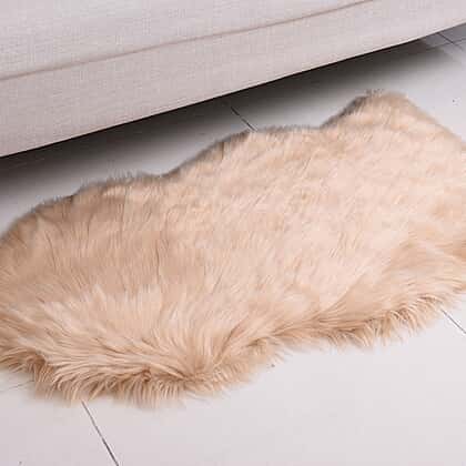2 Piece Set Faux Fur Small Rug 100x60cm with Cushion 45x45cm in Beige