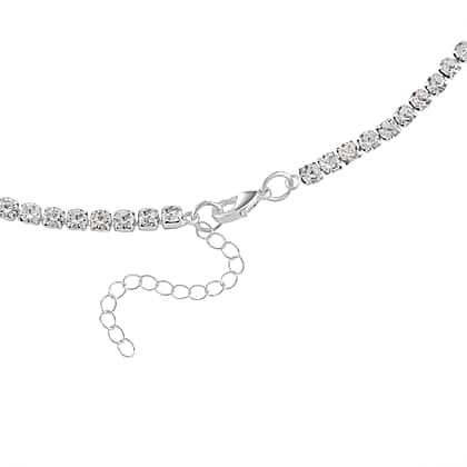 2 Piece Set - Golden Color Shell Pearl, White Crystal Necklace (Size 20-2 EXT) With Push Back Earrings