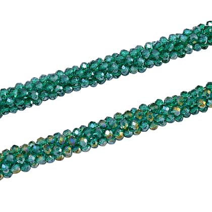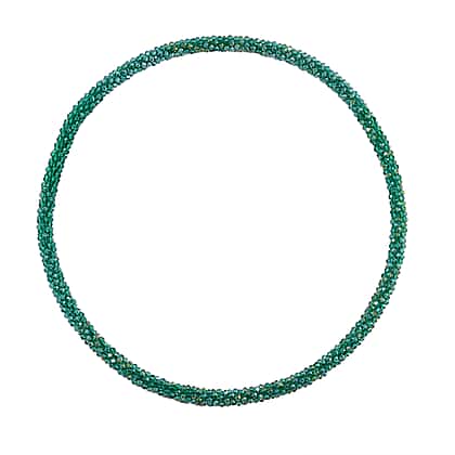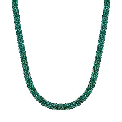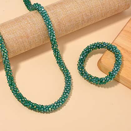 2 Piece Set - Green Austrian Crystal Stone Necklace (Size 30) and Bracelet (Size 6.5-7)