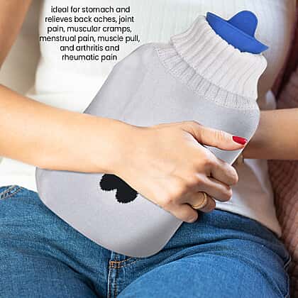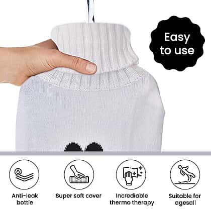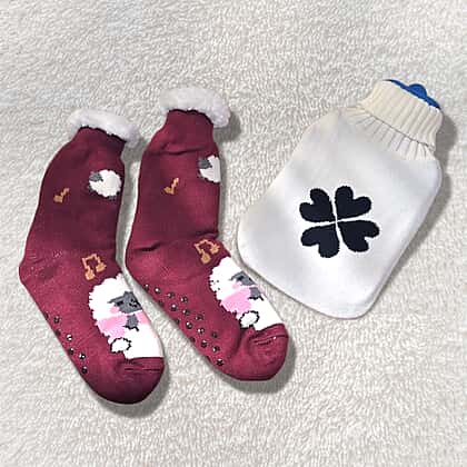 2 Piece Set - Hotwater Bottle with Jacquard Knitted Cover and Sherpa Lined Slipper Socks- Maroon & White